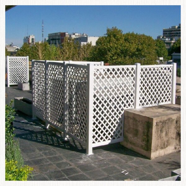 Pueden combinarse con metales, postes y accesorios para crear cercos, divisiones, soportes para plantas trepadoras o estructuras decorativas. Su diseño permite recortarlas, personalizarlas y reencuadrarlas fácilmente, ofreciendo múltiples posibilidades estéticas y funcionales. También es posible generar puertas mediante postes y bisagras, y anclarlas sobre césped o superficies firmes.